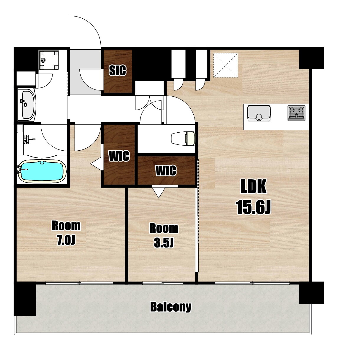 | 間取り | 2LDK(洋7 洋3.5 LDK15.6) | 築年月(築年数) | 2026年2月 新築 |