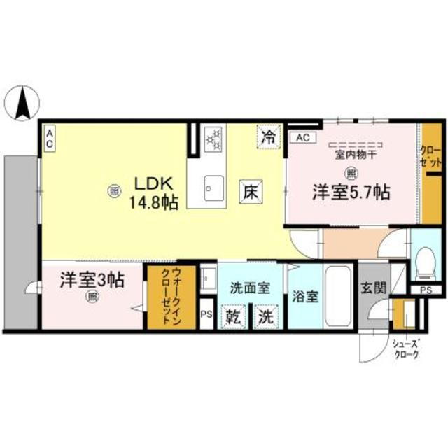 | 間取り | 2LDK(洋5.7 洋3 LDK14.8) | 築年月(築年数) | 2025年11月 新築 |