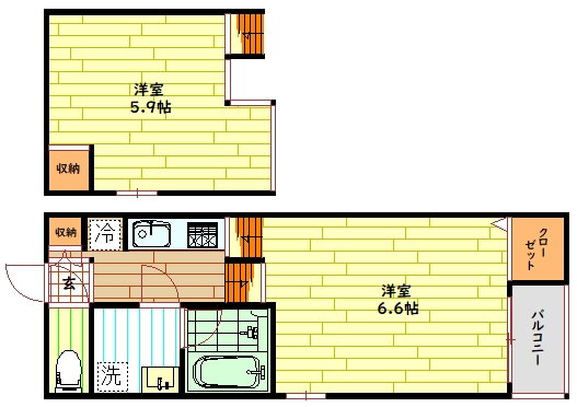 | 間取り | 1K(洋6.6 K2.5) | 築年月(築年数) | 2017年11月(築8年2ヶ月) |