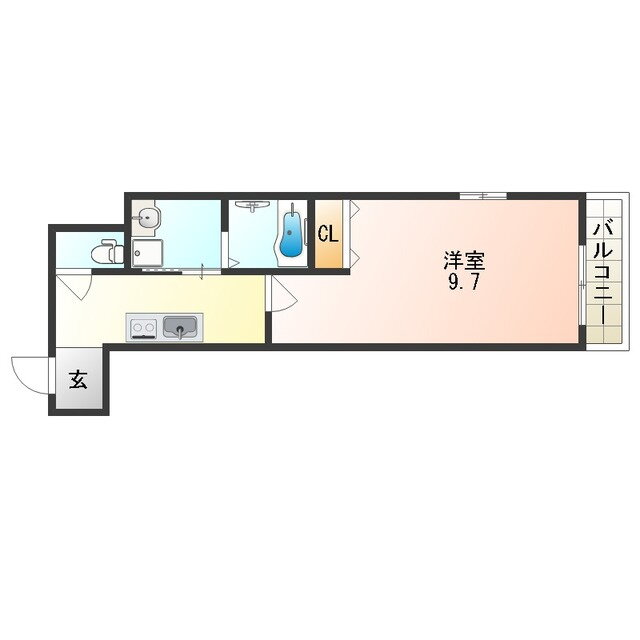 | 間取り | 1K(洋9.7) | 築年月(築年数) | 2019年5月(築6年7ヶ月) |
