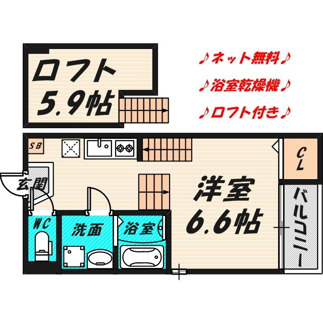 | 設備 | ロフト・オートロック・バルコニー・バス・トイレ別・トイレ・収納スペース・洗濯機置場・洗面所・BS端子・フローリング・照明器具・ガスコンロ可・シャンプードレッサ・温水洗浄便座・システムキッチン・モニタ付インターホン・駐輪場・クローゼット・プロパンガス・浴トイレ別・防犯カメラ・洗面所独立・コンロ2口以上・シューズボックス・インターネット無料・インターネット対応・室内洗濯機置き場 | ||||