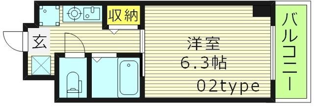 | 間取り | 1K(洋6.3) | 築年月(築年数) | 2002年1月(築23年12ヶ月) |