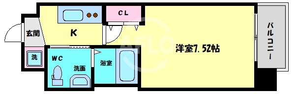 | 間取り | 1K(洋7.5 K2.0) | 築年月(築年数) | 2016年5月(築9年8ヶ月) |