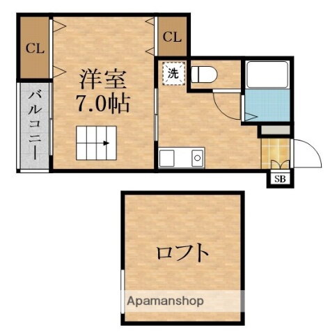 | 間取り | 1K(洋7 K) | 築年月(築年数) | 2005年1月(築20年12ヶ月) |