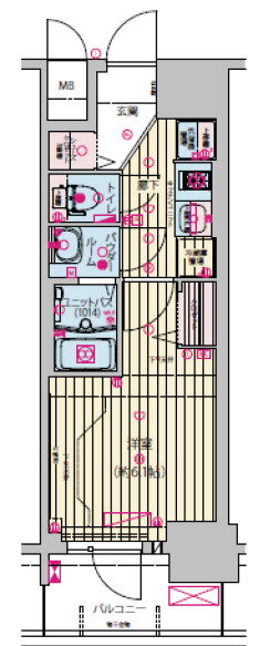 | 間取り | 1K(洋6.1 K2.5) | 築年月(築年数) | 2021年2月(築4年11ヶ月) |