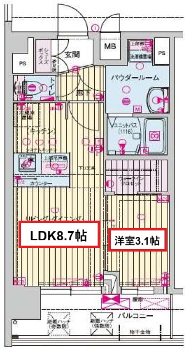 | モニタ付インターホン | ○ | フローリング | ○ | バルコニー | ○ |