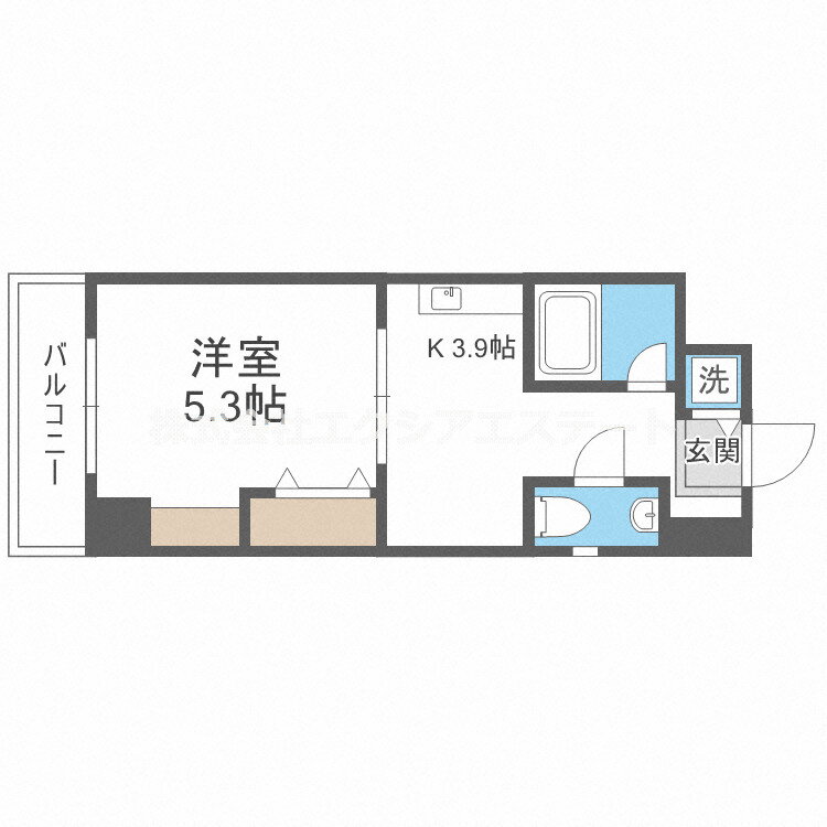 | 間取り | 1K(洋5.3 K3.9) | 築年月(築年数) | 2008年2月(築17年10ヶ月) |