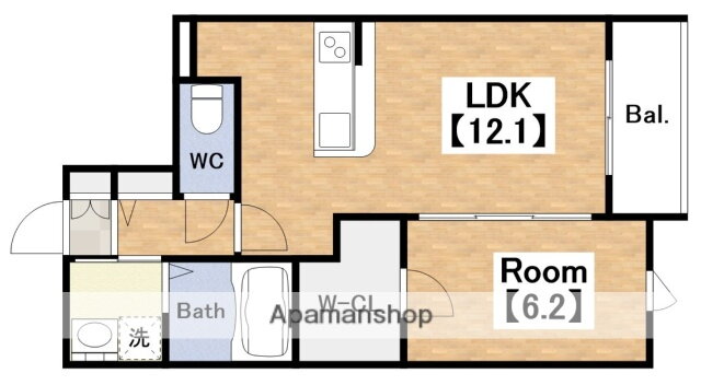 1LDK(洋6.2 LDK12.1) |