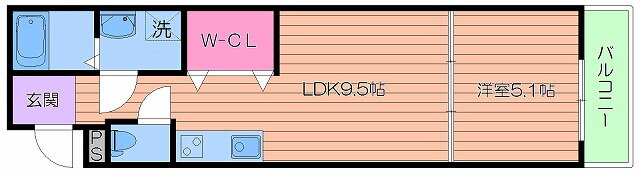 | 間取り | 1LDK(洋5.1 LDK9.5) | 築年月(築年数) | 2011年12月(築14年1ヶ月) |
