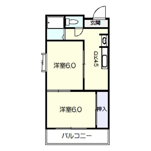 | 間取り | 2DK(洋6 洋6 DK4.5) | 築年月(築年数) | 1987年11月(築38年1ヶ月) |
