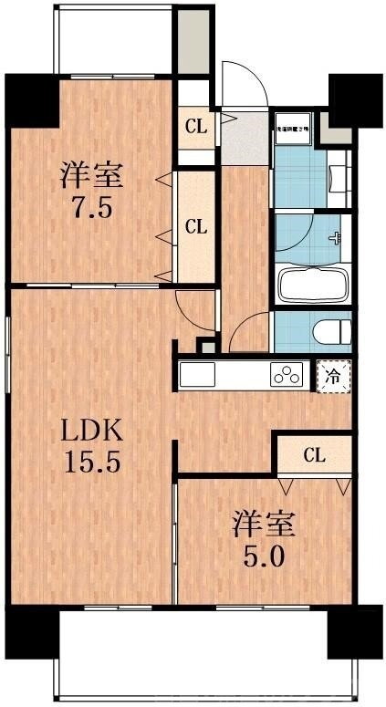 2LDK(洋7.5 洋5 LDK15.5) |