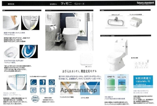 | 設備 | 冷房・暖房・エアコン・オートロック・バルコニー・バス・トイレ別・トイレ・収納スペース・洗濯機置場・洗面所・CATV・BS端子・フローリング・浴室乾燥機・シャンプードレッサ・温水洗浄便座・システムキッチン・モニタ付インターホン・駐輪場・クローゼット・物置・CS・衣類乾燥機・都市ガス・浴トイレ別・防犯カメラ・洗面所独立・コンロ2口以上・シューズボックス・インターネット無料・インターネット対応・室内洗濯機置き場 | ||||
