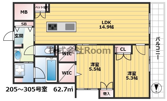 2LDK(洋5.5 洋5.3 LDK14.9) |