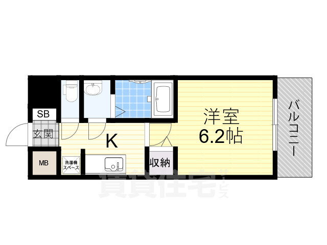 | 間取り | 1K(洋6.2 K2.8) | 築年月(築年数) | 2019年5月(築6年8ヶ月) |