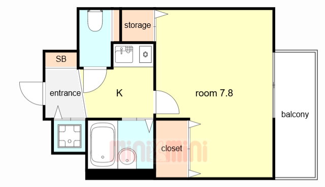 | 間取り | 1K(洋7.8) | 築年月(築年数) | 2001年3月(築24年10ヶ月) |