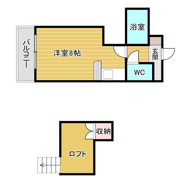 | 間取り | 1K(洋8.0 ロフト 3.0) | 築年月(築年数) | 1990年8月(築35年5ヶ月) |