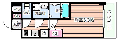 | 間取り | 1K(洋6.3) | 築年月(築年数) | 2018年11月(築7年2ヶ月) |