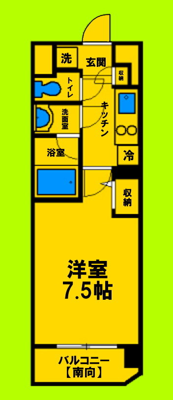| 間取り | 1K(洋7.5) | 築年月(築年数) | 2015年3月(築10年10ヶ月) |