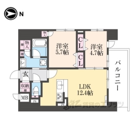 | 間取り | 2LDK(洋5.7 洋4.7 LDK12.4) | 築年月(築年数) | 2026年2月 新築 |