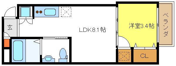 1LDK(洋3.4 LDK8.1) |