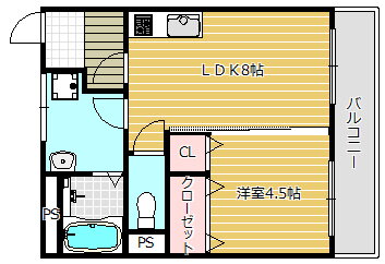 | 間取り | 1LDK(洋4.5 LDK8.0) | 築年月(築年数) | 1976年4月(築49年8ヶ月) |