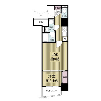 | 間取り | 1LDK(洋3.4 LDK8.0) | 築年月(築年数) | 2016年3月(築9年10ヶ月) |