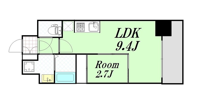 | 間取り | 1LDK(洋2.7 LDK9.4) | 築年月(築年数) | 2023年8月(築2年5ヶ月) |