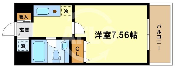 | 間取り | 1K(洋7.5 K2.0) | 築年月(築年数) | 2001年6月(築24年7ヶ月) |