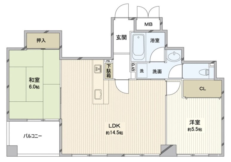 | 間取り | 2LDK(和6.0 洋5.5 洋5.3 LDK14.5 納戸 4.6) | 築年月(築年数) | 1998年1月(築27年12ヶ月) |