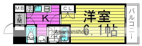 | 間取り | 1K(洋6.1 K) | 築年月(築年数) | 2003年3月(築22年10ヶ月) |
