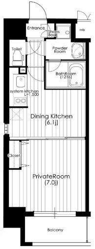 | 間取り | 1DK(洋7 DK6.1) | 築年月(築年数) | 2004年7月(築21年6ヶ月) |