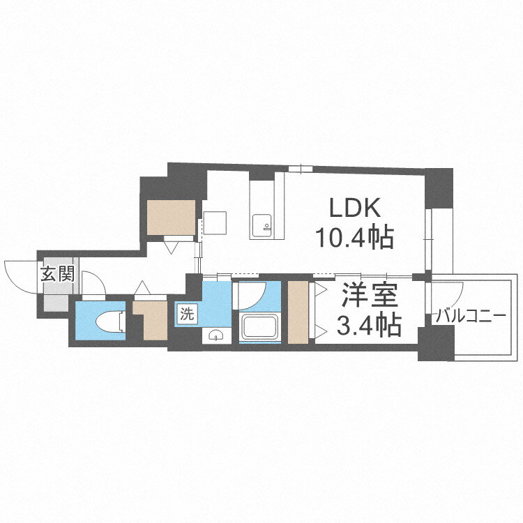 | 間取り | 1LDK(洋3.4 LDK10.4) | 築年月(築年数) | 2019年12月(築6年1ヶ月) |