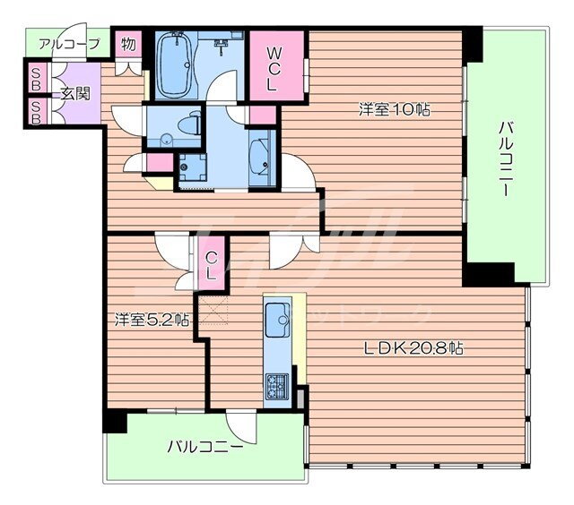 2LDK(洋10 洋5.2 LDK20.8) |