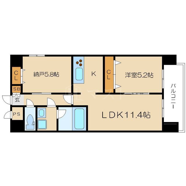 1SLDK(洋5.2 LDK11.4 納戸 5.8) |