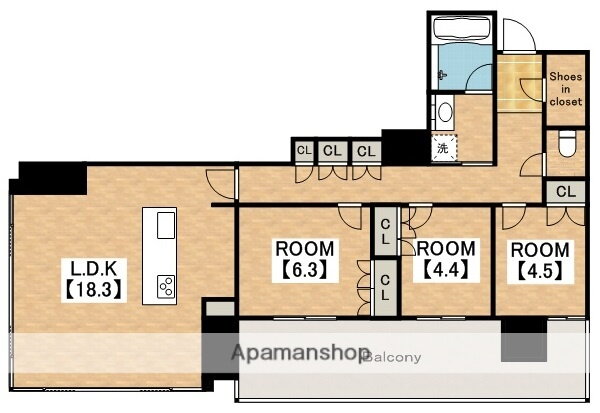 3LDK(洋6.3 洋4.5 洋4.4 LDK18.3) |