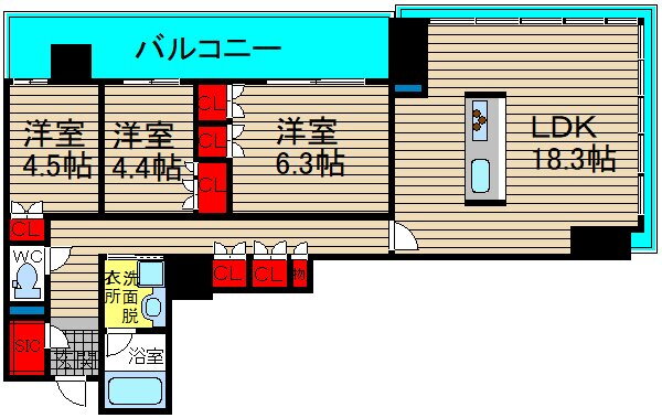3LDK(洋6.3 洋4.5 洋4.4 LDK18.3) |