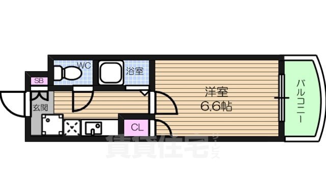 | 間取り | 1K(洋6.60) | 築年月(築年数) | 2001年3月(築24年10ヶ月) |