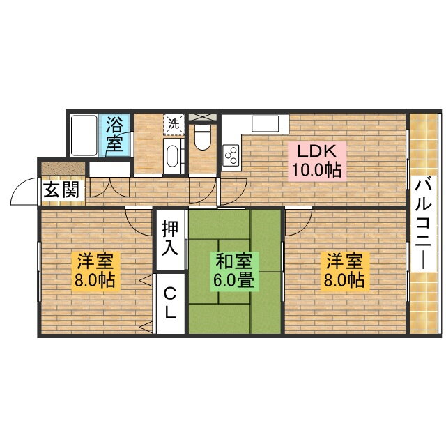 | 間取り | 3LDK(和6 洋8 洋8 LDK10) | 築年月(築年数) | 1991年1月(築34年12ヶ月) |