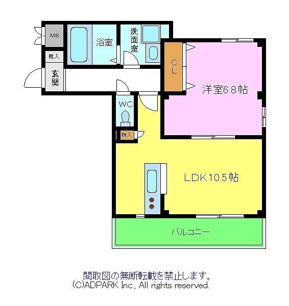 | 間取り | 1LDK(洋6.8 LDK10.5) | 築年月(築年数) | 2012年2月(築13年11ヶ月) |