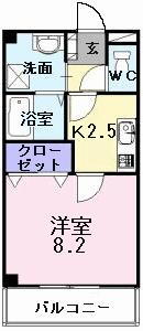 | 間取り | 1K(洋8.2 K2.5) | 築年月(築年数) | 2003年3月(築22年10ヶ月) |