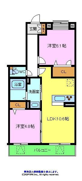 2LDK(洋6.1 洋4.8 LDK10.6) |