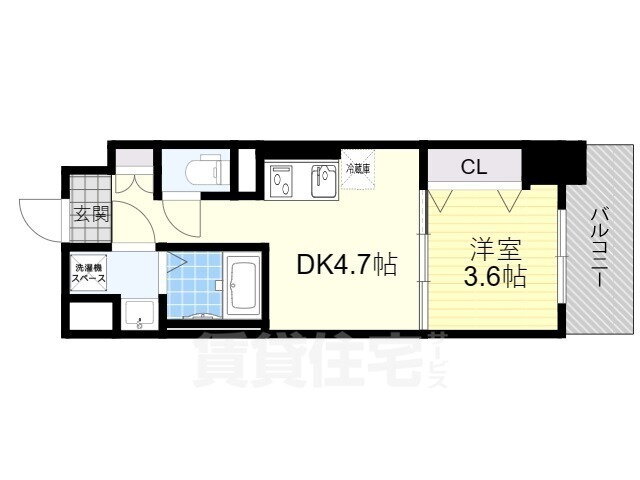 | 間取り | 1DK(洋3.60 DK4.70) | 築年月(築年数) | 2024年2月(築1年10ヶ月) |