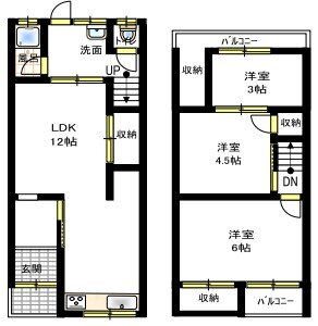 | 間取り | 3LDK(洋6.0 洋4.5 洋3.0 LDK12.0) | 築年月(築年数) | 1967年5月(築58年8ヶ月) |