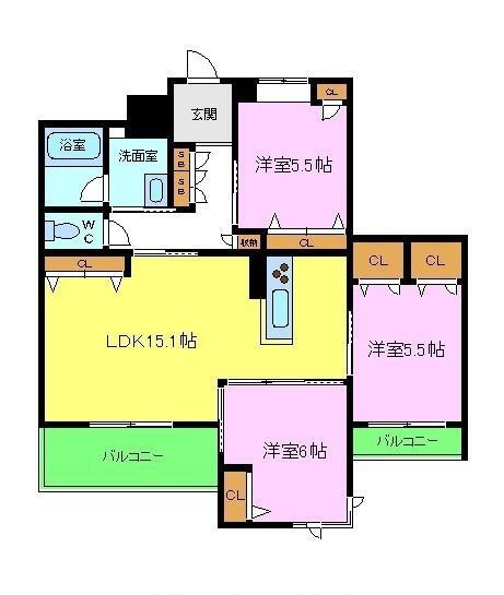 2LDK(洋6 洋5.5 洋5.5 LDK15.1) |