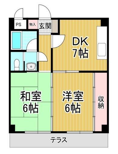 | 間取り | 2DK(和6 和6 DK7) | 築年月(築年数) | 1993年9月(築32年3ヶ月) |