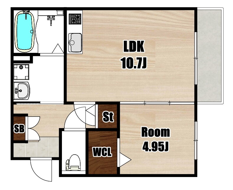1SLDK(洋4.95 LDK10.7 納戸 1.25) |