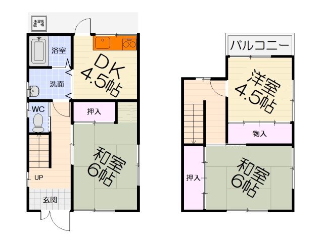 | 間取り | 3DK(和6.0 和6.0 洋4.5 DK4.5) | 築年月(築年数) | 1974年3月(築51年10ヶ月) |