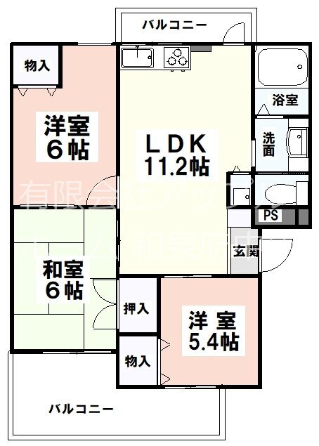 3LDK(和6 洋6 洋5.4 LDK11.2) |