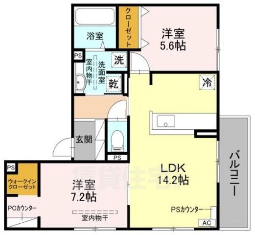 | 間取り | 2LDK(洋7.2 洋5.6 LDK14.2) | 築年月(築年数) | 2025年9月 新築 |