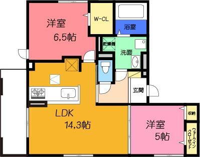 2LDK(洋6.5 洋5 LDK14.3) |